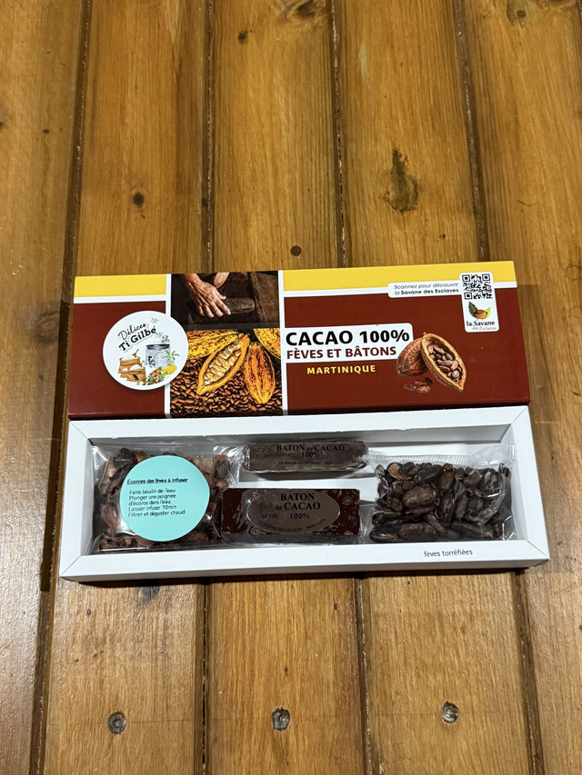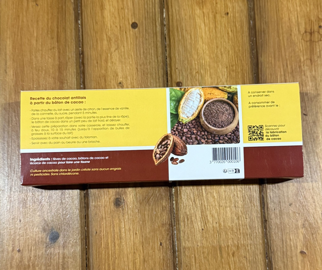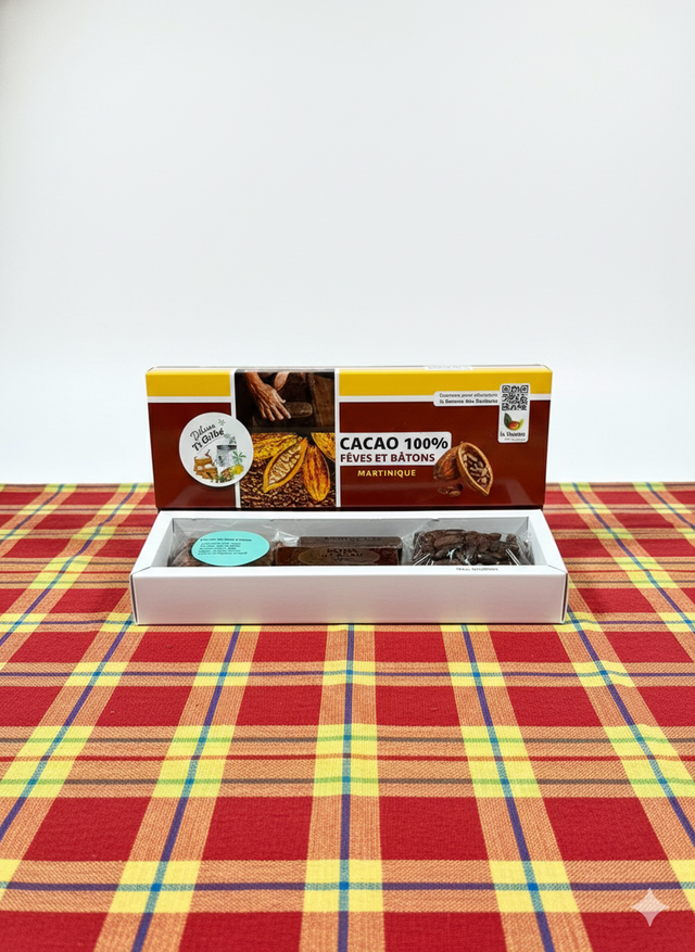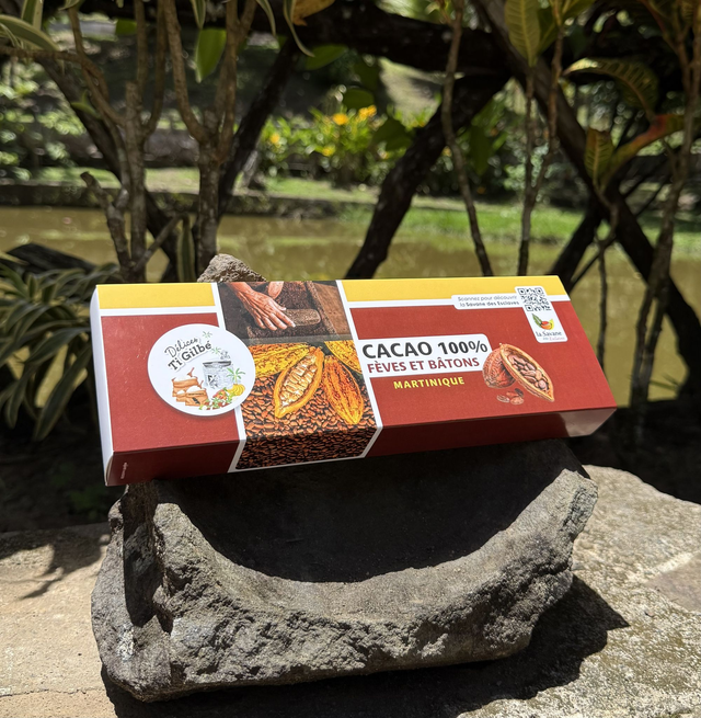 Deux bâtons de cacao 100% (60 g et 20 g) pour savourer toute la richesse aromatique du chocolat brut.